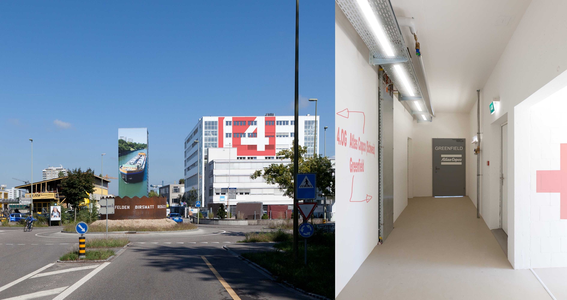 Entwurf einer einfache Signaletik, um dem bestehenden Industriegebäude die notwendige Präsenz zu schaffen. Die endgültige Umsetzung eines Grafikers kann hier angeschaut werden: Pier 14 Biersfelden